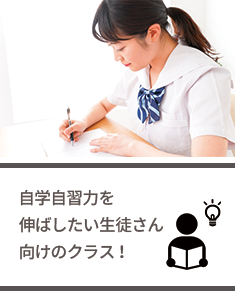 『解いてみる』は講師:生徒が最大1:2までの完全個別指導で、学習に対する主体性や自分で考えていく力を伸ばしていくクラスです。わからないところも講師がしっかりサポートいたします。生徒さんの理解力に合わせて授業が進むので、学校で理解できなかった単元の学習や無理のない予習が可能です。学校の教科書に準拠した教材を使用し、生徒さんの通う学校の進捗に合わせた定期試験対策や補講授業を行います。弱点に合わせて前学年の単元にさかのぼって指導したり、試験範囲を何度も演習するので、着実にレベルアップできます。